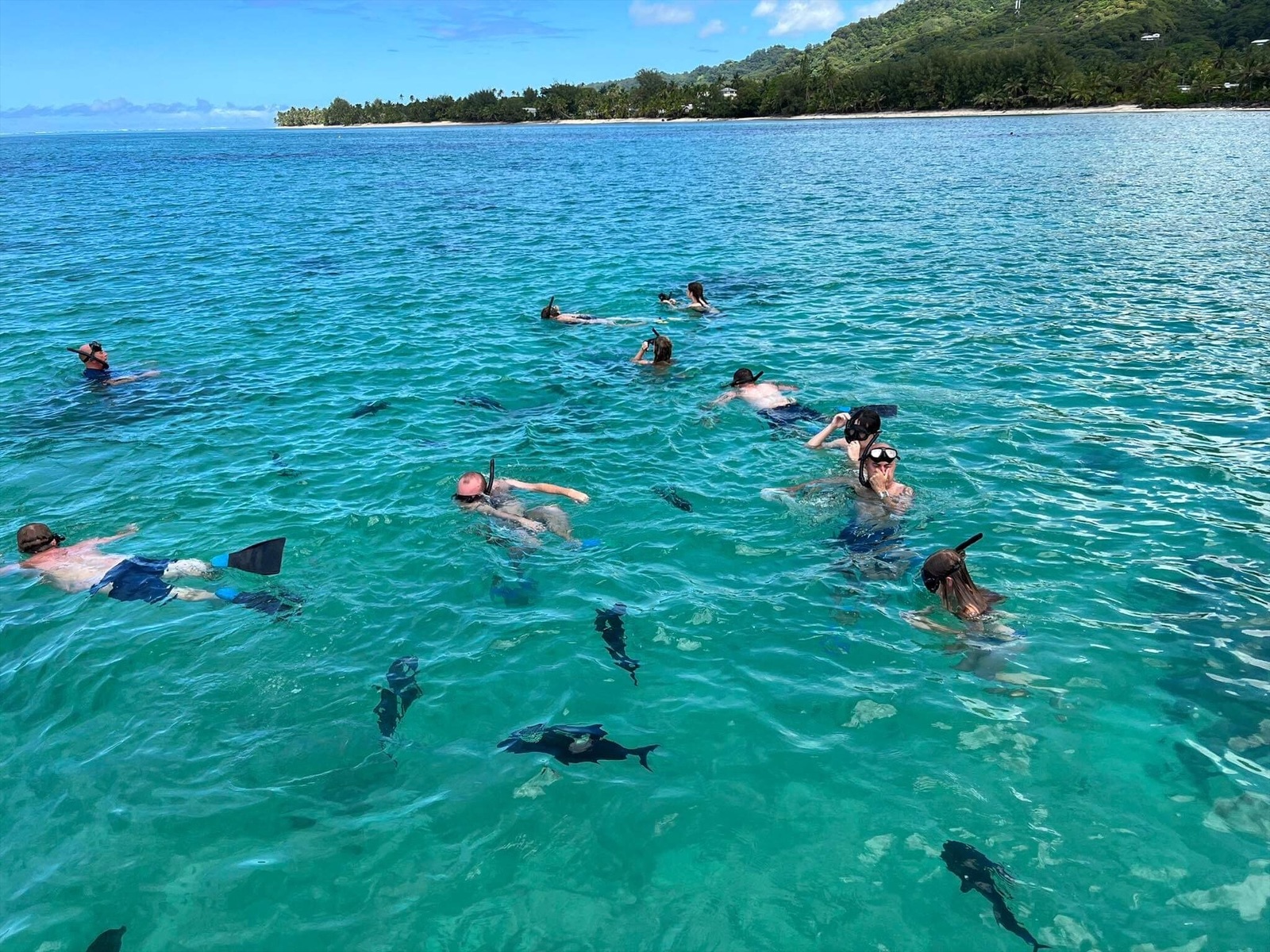 The half day Muri Lagoon cruise includes a scrumptious, fresh fish BBQ lunch. After your snorkel we will head to a small island in the lagoon to enjoy a delicious fresh fish BBQ which includes: Fish cooked “Raro style” over an open fire, BBQ bananas (the captains speciality), potato salad, coleslaw, delicious paw paw salad, breadfruit salad mixed with gluten free mayo. Accompanied by seasonal fruits and crisp French bread.