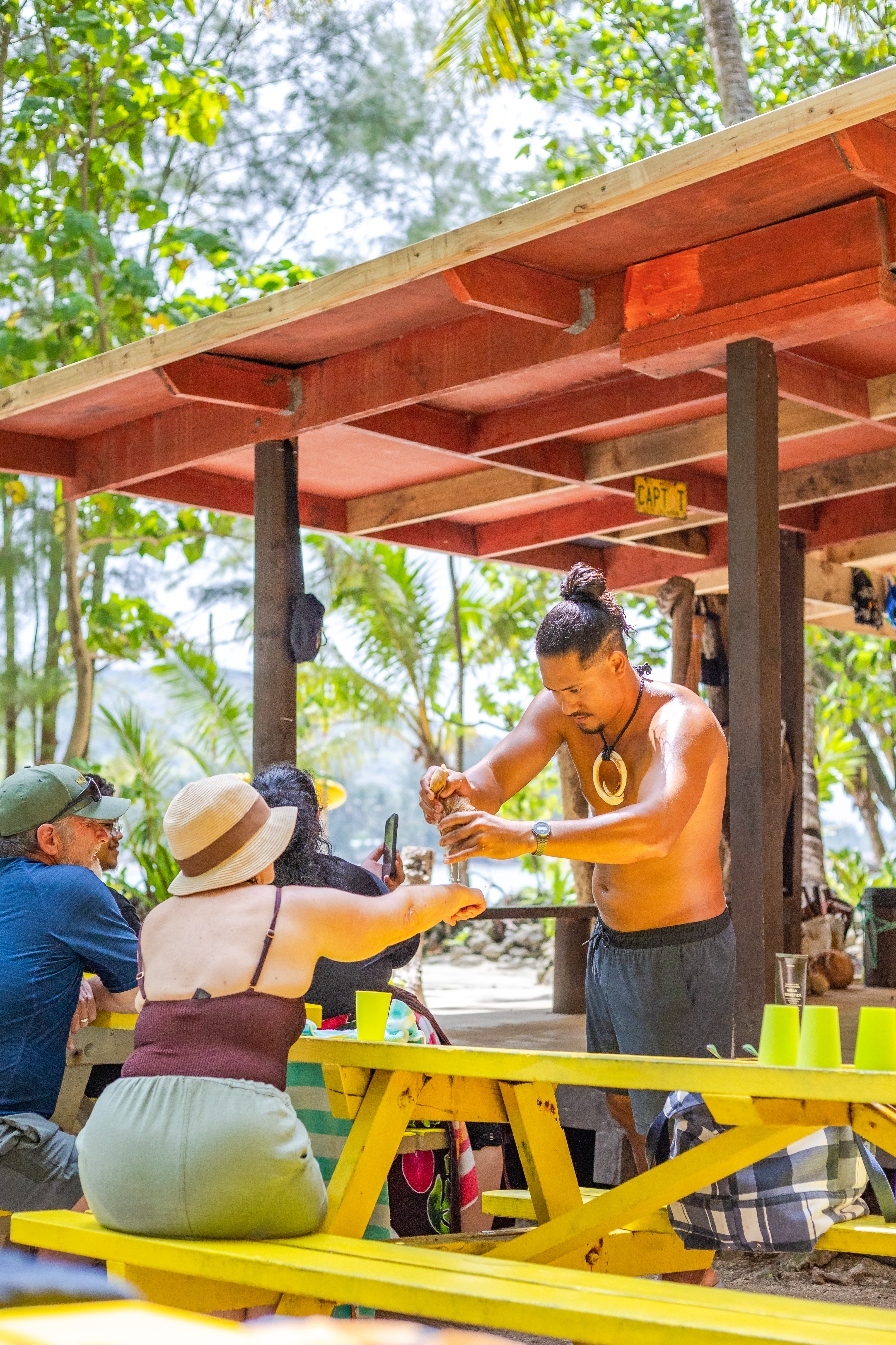 After snorkelling the crew will entertain you with hilarious coconut husking demo’s as well as how to shimmy up a coconut tree. Their demonstration of 100 ways to tie a sarong will have you in stitches.