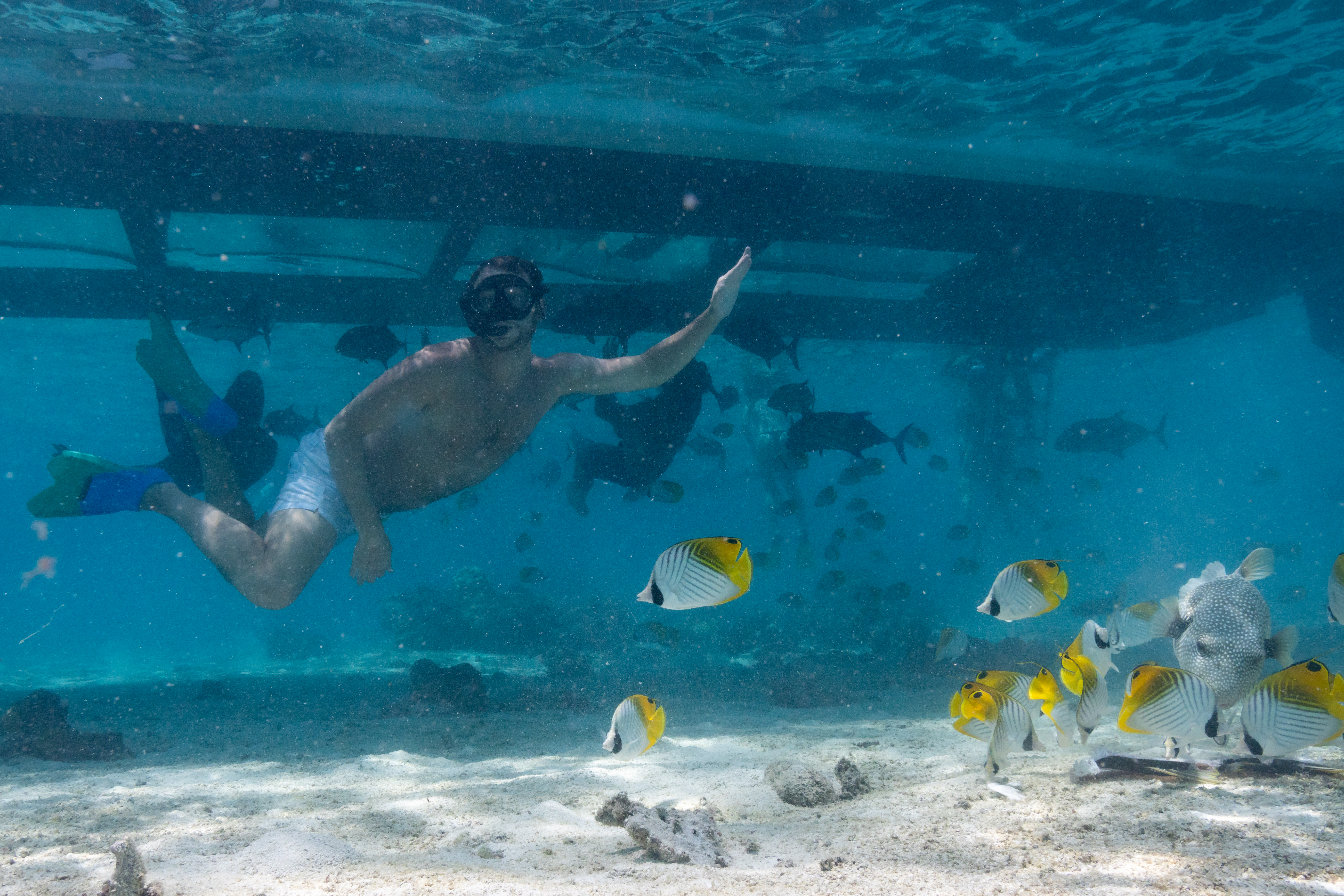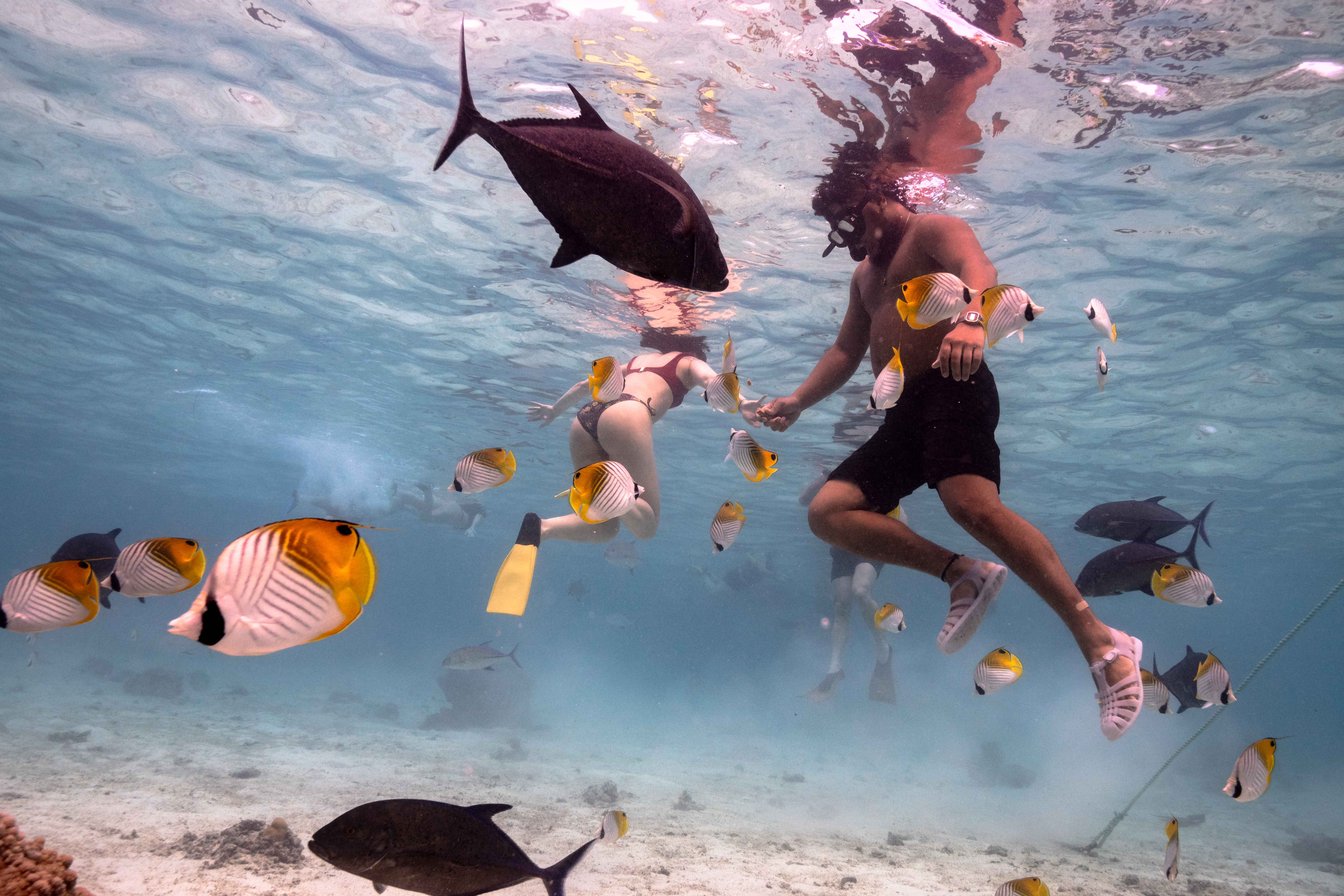 Cruise on our glass bottom boats to the marine reserve for some awesome snorkeling with giant clams and schools of colourful fish, feed the fish before heading back to Muri Beach.